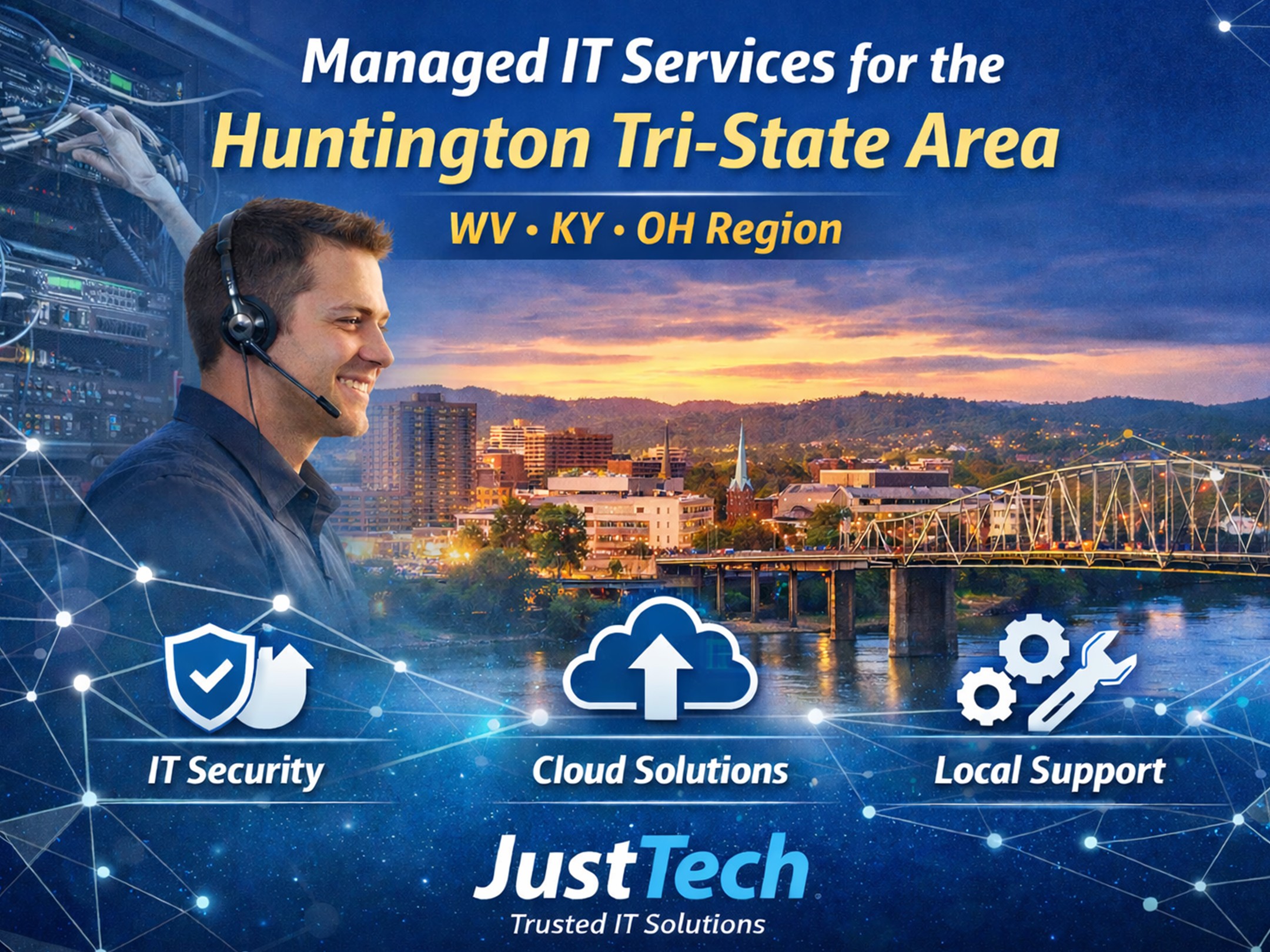 JustTech provides managed IT services and IT outsourcing in Huntington, West Virginia and across the WV / KY / OH Tri-State region, supporting organizations in Charleston, Barboursville, Ashland, Portsmouth, and surrounding communities. Our managed IT solutions give businesses the power of a full IT department—without the cost of hiring in-house