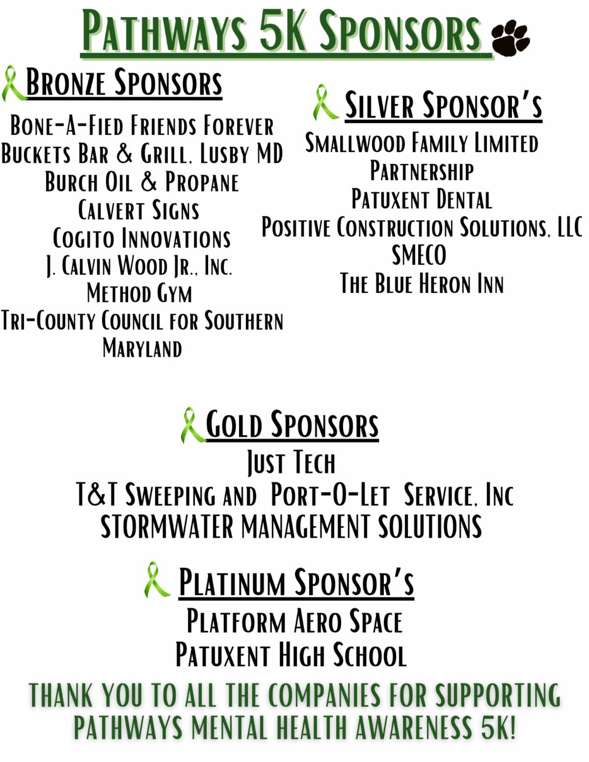 On April 12th, JustTech again sponsored Pathways first Community Mental Health Awareness 5K at Patuxent High School in Lusby, Maryland. This was a family fun event to help raise money for this local mental health non-profit agency. The 5k took place on the Patuxent High School Cross County Trail. Everyone had a great time and they had food trucks, vendors, music, raffles and much more.