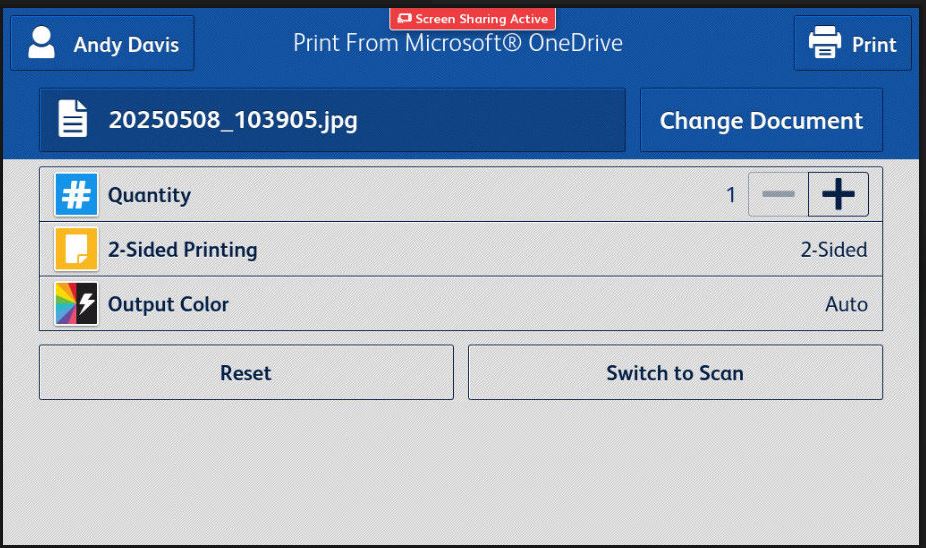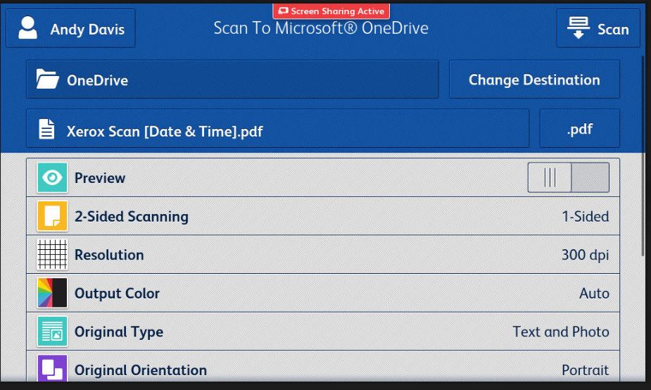 The below screen shots are taken from a Xerox multifunction printer’s control panel and show how easy it is to use the app.